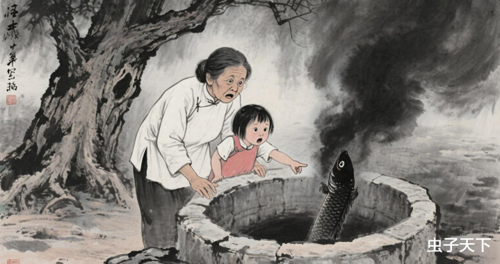 这天,我正蹲在井边洗衣裳,冷不丁看见井水里翻上来一片巴掌大的黑鳞,闪着幽幽的冷光。